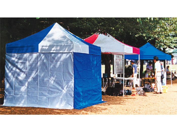天幕と同様に豊富なカラーバリエーション。1方幕から4方幕まで環境に応じてご使用いただけます。連結はファスナーで簡単に行なえます。 素材はポリエステル250D防炎・防水・UVカット塗布処理されており屋外イベントでも安心してお使いいただけます。 オプションで出入り口用ファスナー加工・窓もお客様のご希望の位置に取付け可能です。